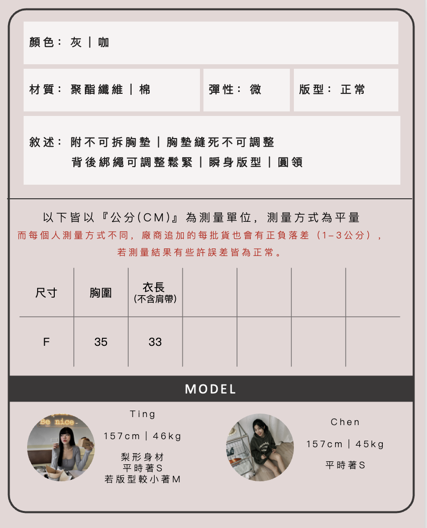 由於每台電腦或手機的顯示器不同,拍攝時室內外燈光也有所不同,會已最相近的相片顏色呈現給大家,若實體商品還是有些許色差皆為正常。