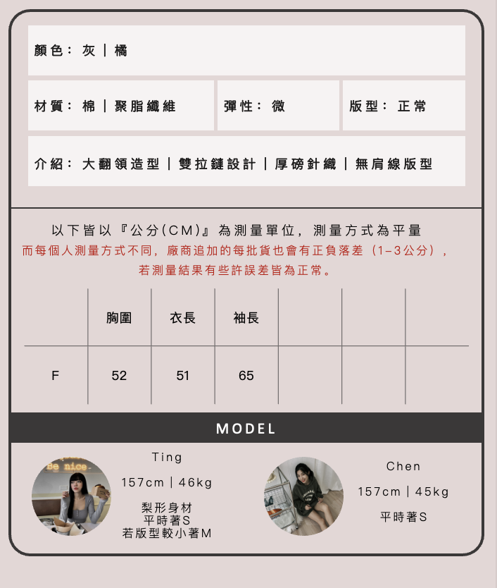 由於每台電腦或手機的顯示器不同,拍攝時室內外燈光也有所不同,小編會已最相近的相片顏色呈現給大家,若實體商品還是有些許色差皆為正常。