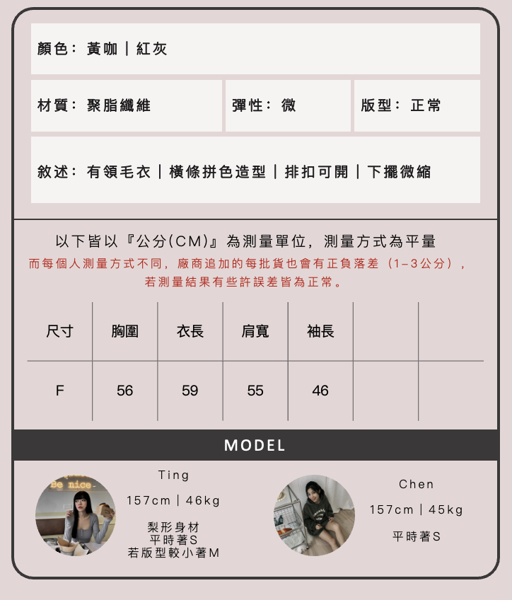 由於每台電腦或手機的顯示器不同,拍攝時室內外燈光也有所不同,小編會已最相近的相片顏色呈現給大家,若實體商品還是有些許色差皆為正常。