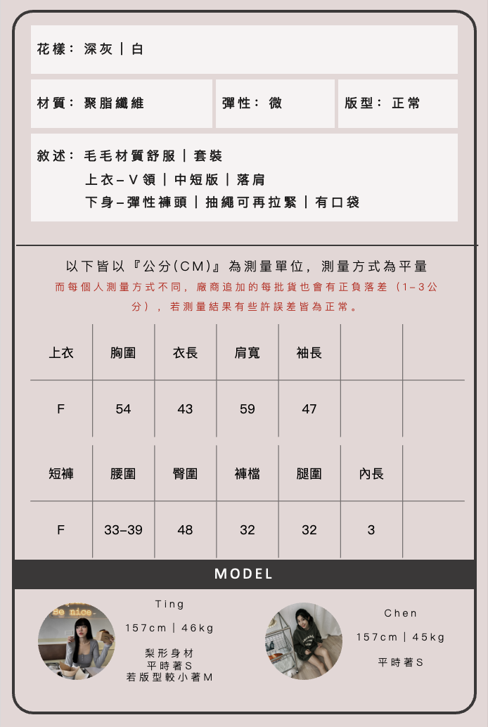 尺寸表皆為公分平放測量,而每個人測量方式不同,廠商追加的每批貨也會有正負落差(1-3公分),若測量結果有些許誤差皆為正常。