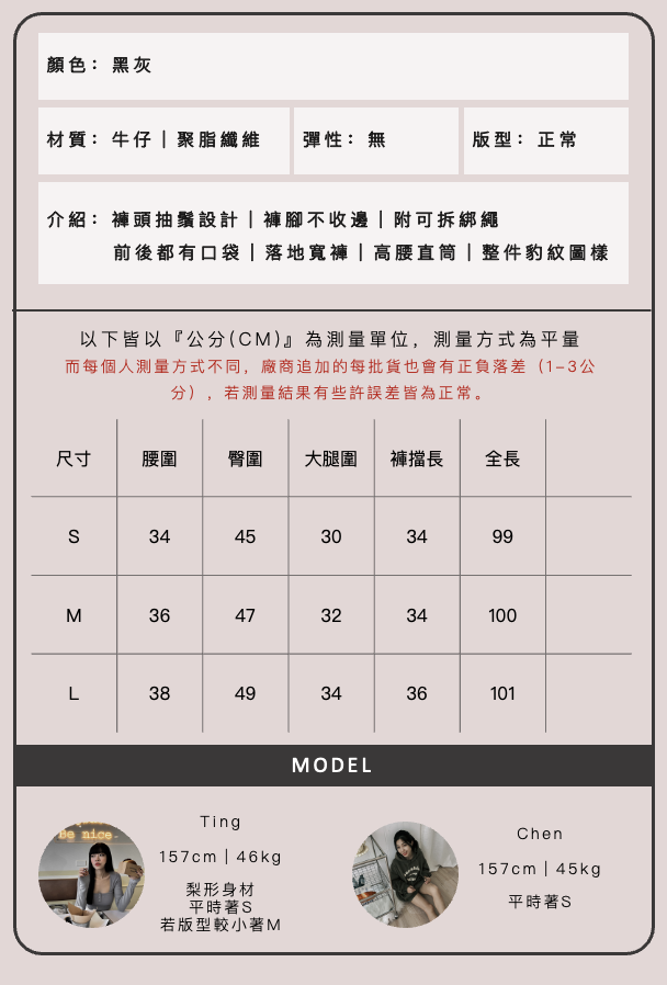 1.第一次穿前先單獨手洗牛仔褲(去掉浮色)