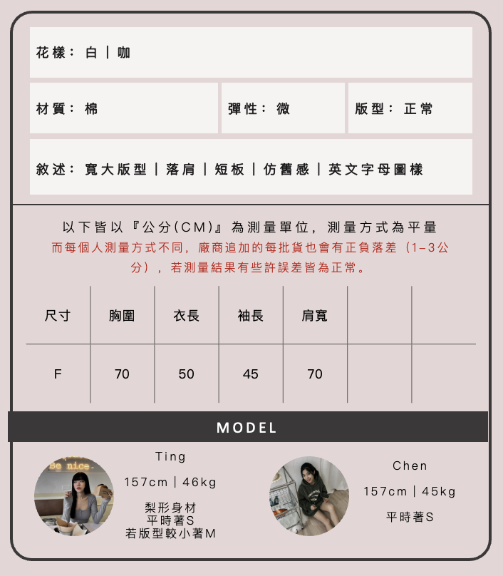 由於每台電腦或手機的顯示器不同,拍攝時室內外燈光也有所不同,小編會已最相近的相片顏色呈現給大家,若實體商品還是有些許色差皆為正常。