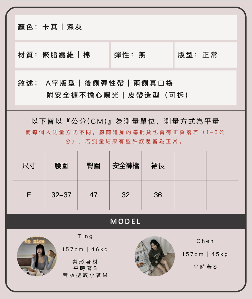 幫你修修腿A字版工裝短裙(附安全褲)-2色【C2608】