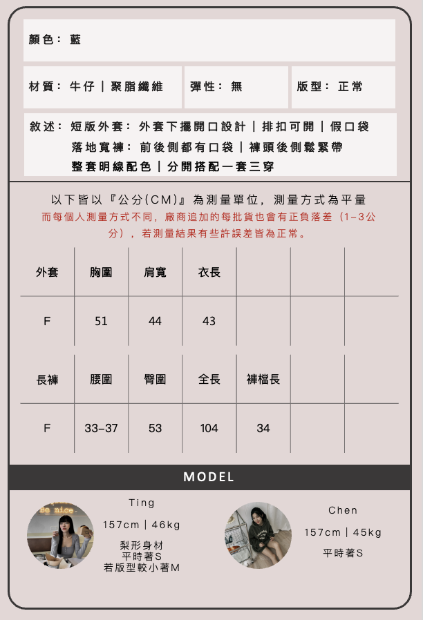 穿上會愛死的牛仔短版外套+鬆緊落地長褲【#8251001】
