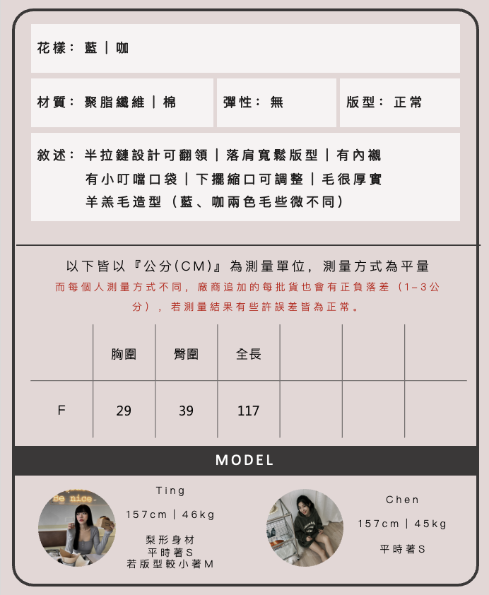由於每台電腦或手機的顯示器不同,拍攝時室內外燈光也有所不同,小編會已最相近的相片顏色呈現給大家,若實體商品還是有些許色差皆為正常。